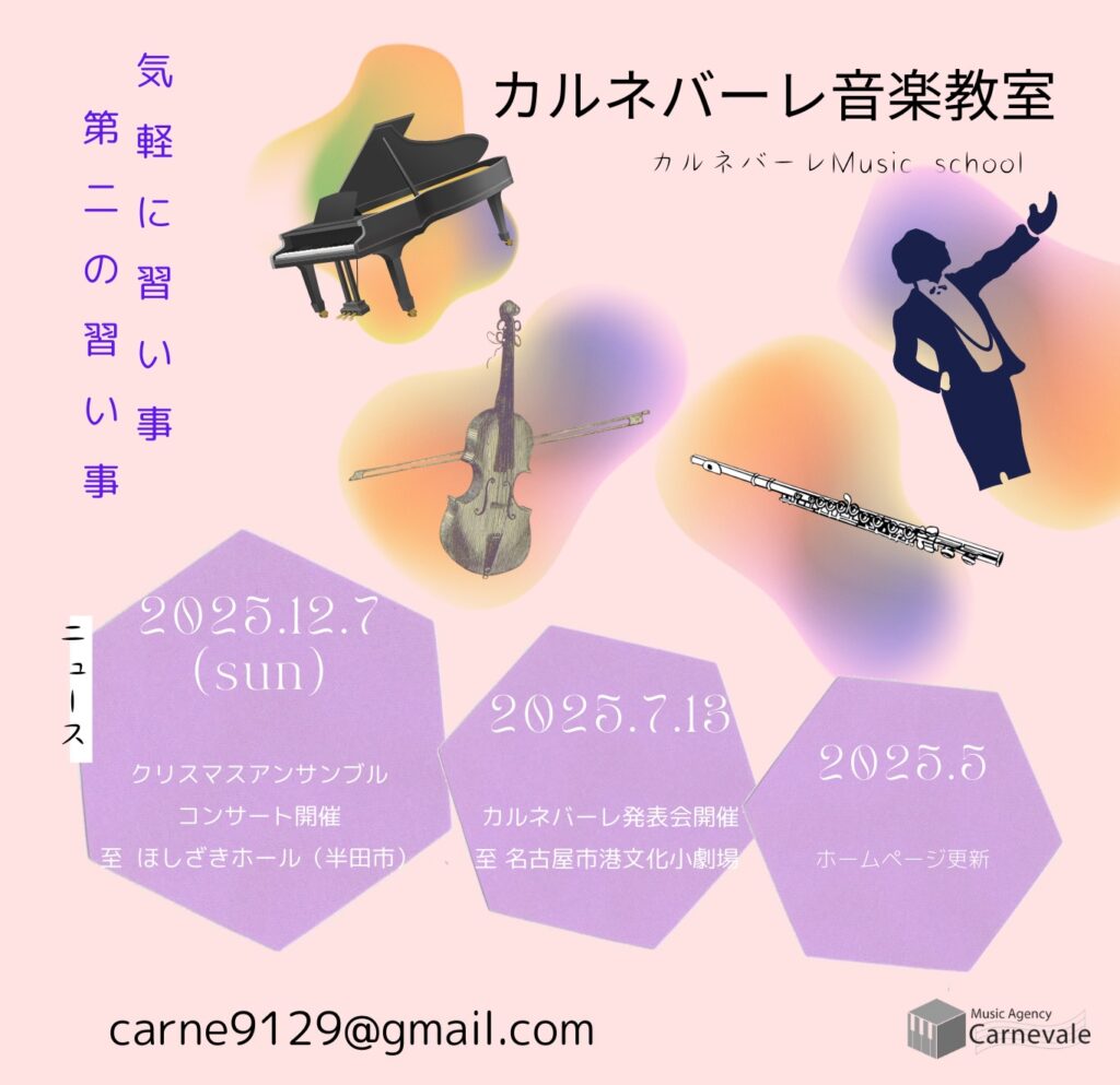 半田市の成岩駅から徒歩1分のピアノ教室、バイオリン教。